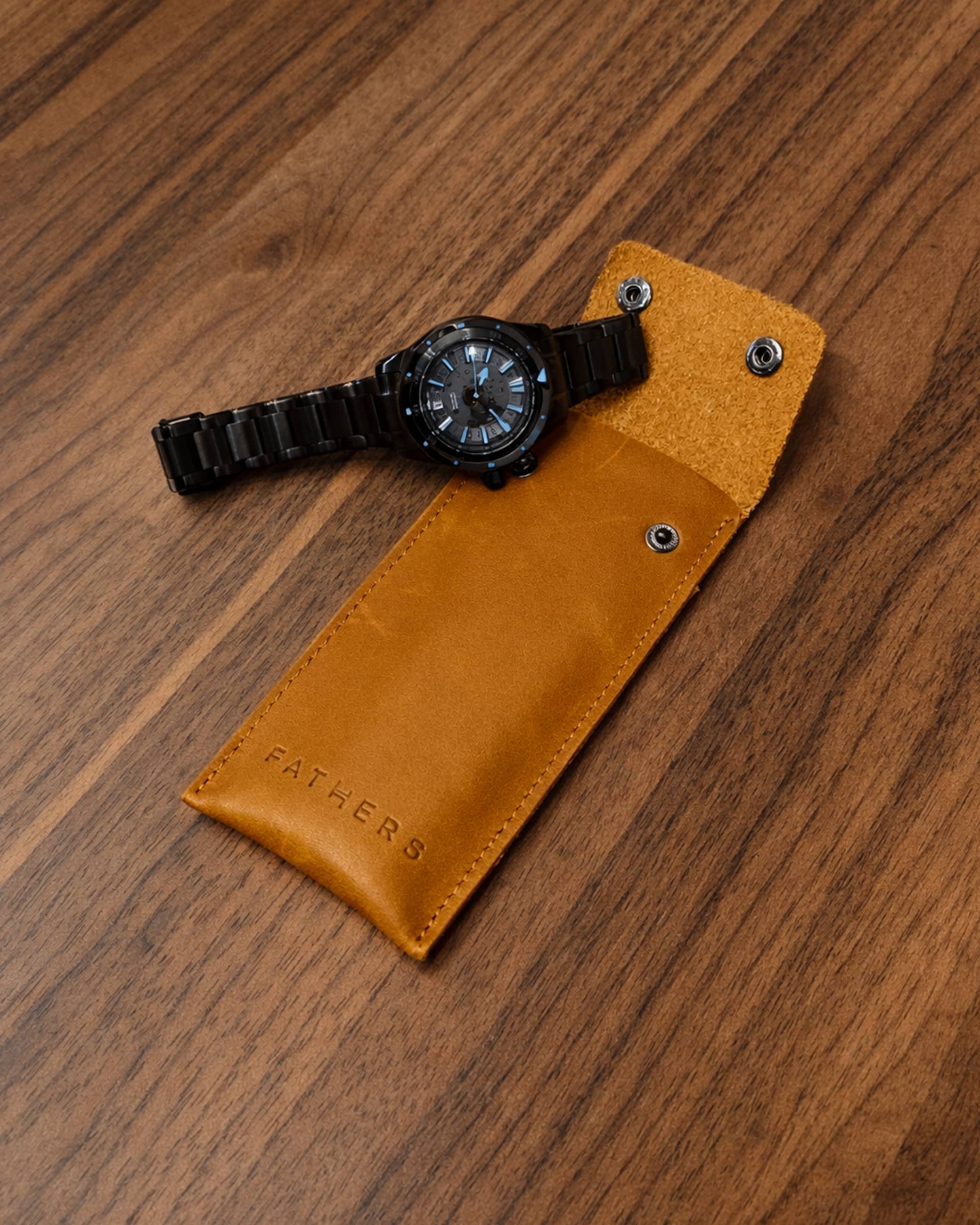 Leather, alive and textured, transforms over time, leaving traces of those who use it. From travel watch cases to pocket watches to keep in a drawer, each accessory is designed to accompany the Fathers man in his daily life with discretion, style, and consistency. Because protecting time means honoring what it represents.