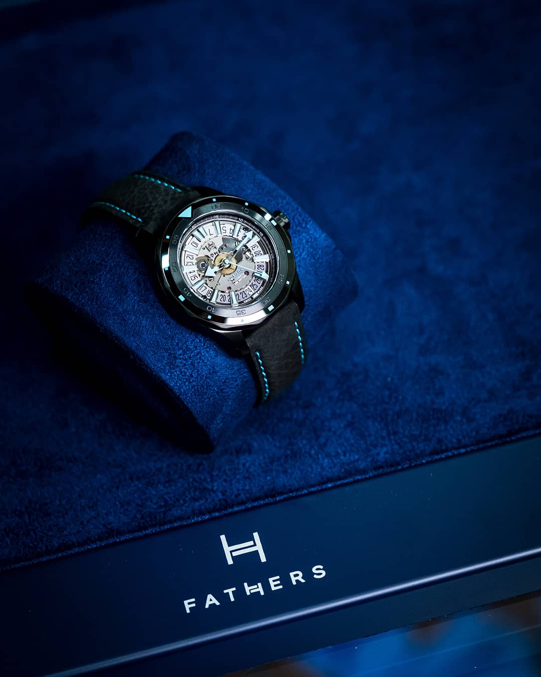 Fathers “Evolution Black Hole” automatic watch with Swiss Made Sellita SW200-1 movement ( 42 hours of battery life), 316L steel case Ø 40 mm, with see-through case back with anti-scratch treatment.