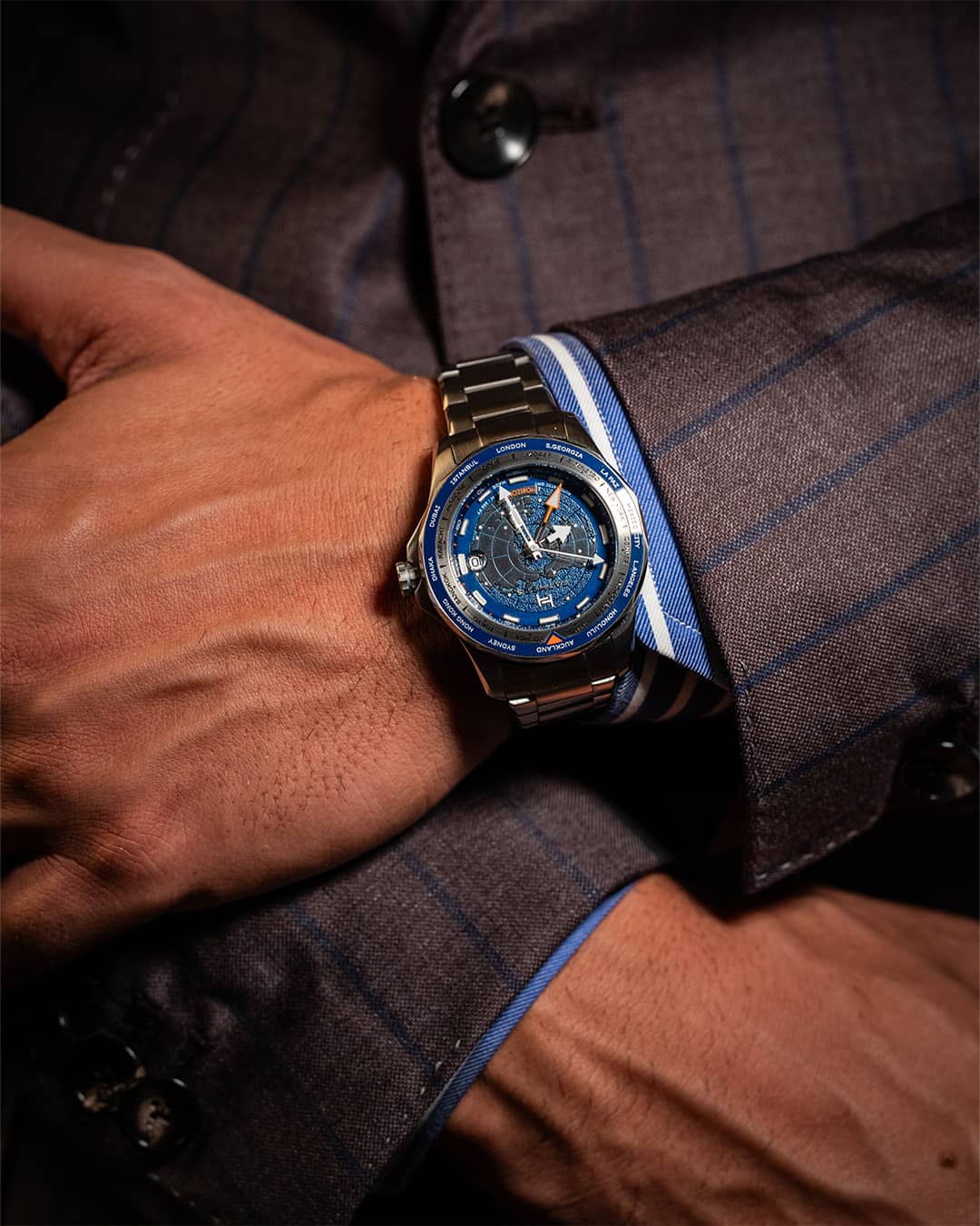 Fathers Globetrotter Blue – Swiss Made Automatic GMT Watch – Blue 40 mm